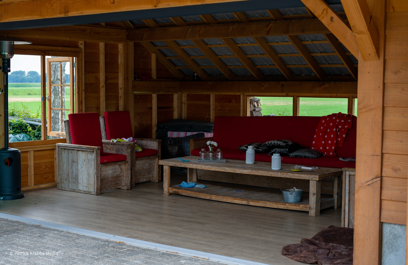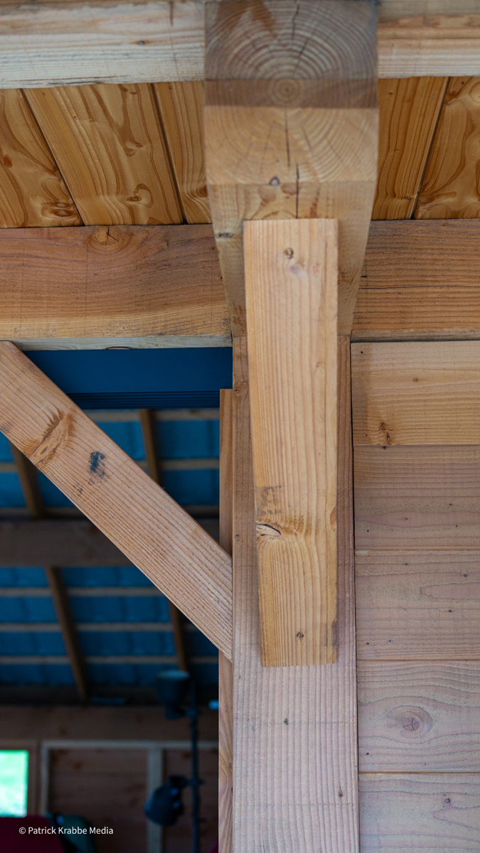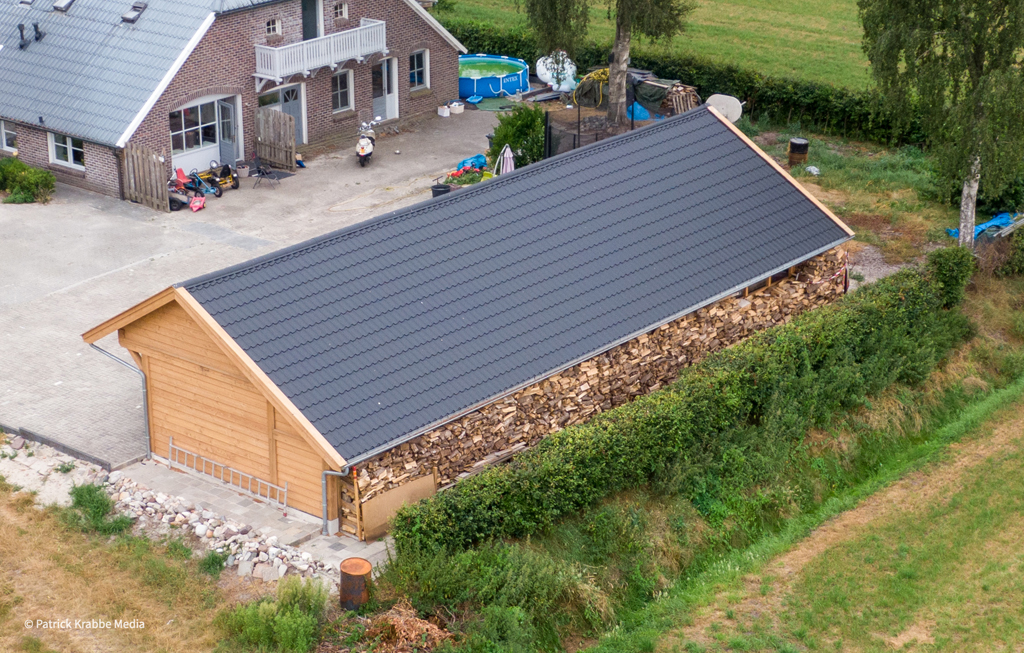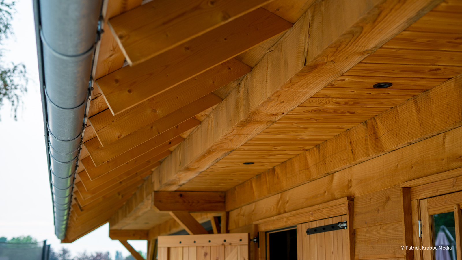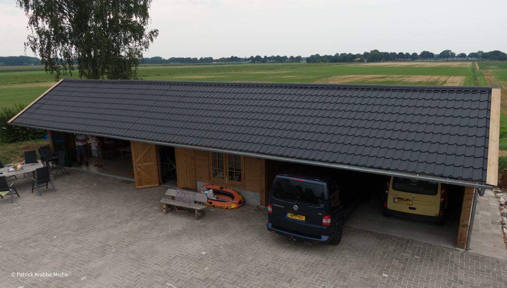 Omschrijving:Douglas constructie gemaakt door Olthuis Bouw & AdviesDakpanprofielplaten geleverd door derden
