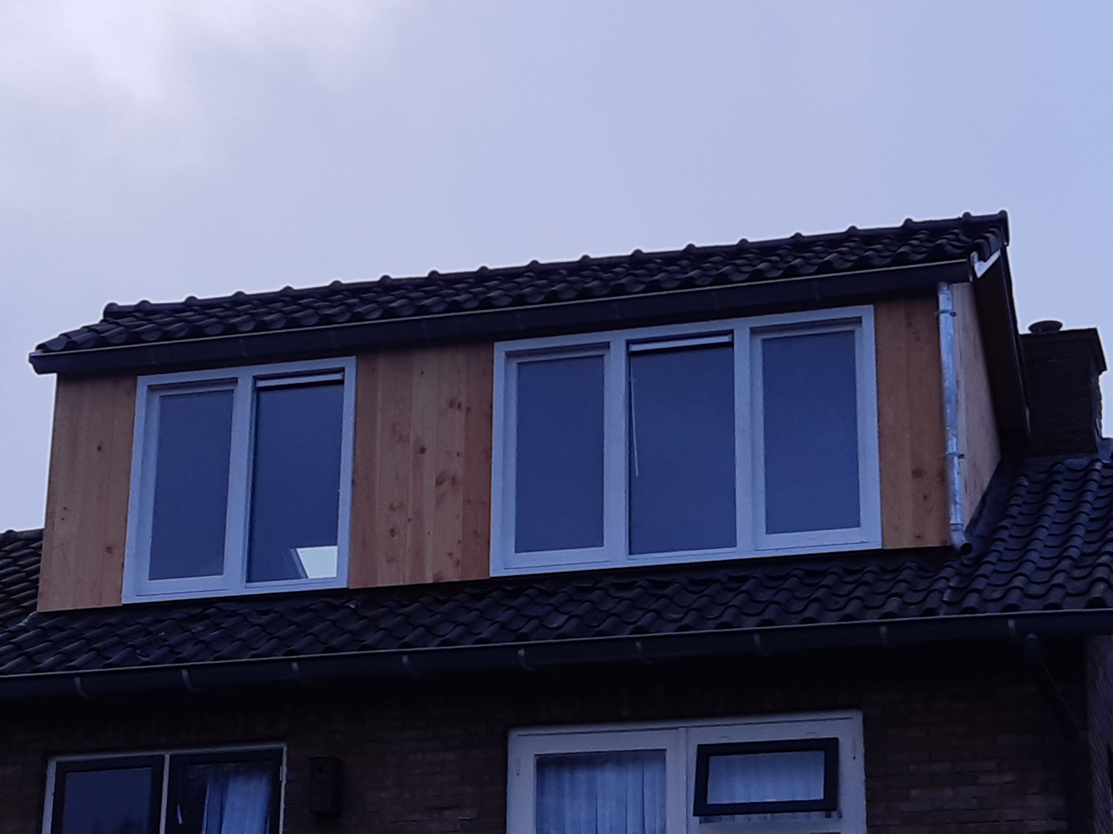 Omschrijving: Dakkapel is in de werkplaats geheel prefab gefabriceerd, daarna getransporteerd naar Enschede. Ter plaatse in bestaande dak gemonteerd